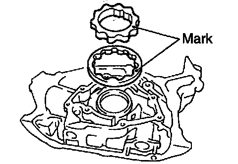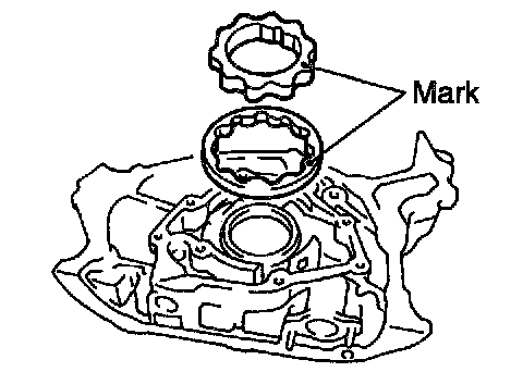 Place the drive and driven rotors into the oil pump body with the mark facing upward.