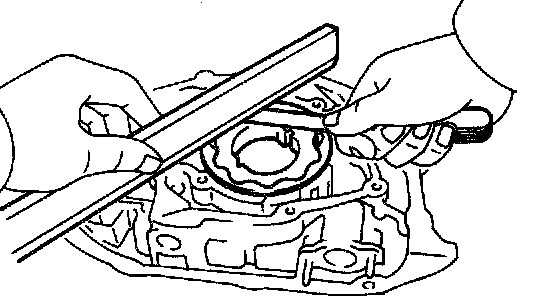 4) Using SST and a hammer, tap in the oil seal until its surface is flush with the oil pump body edge.