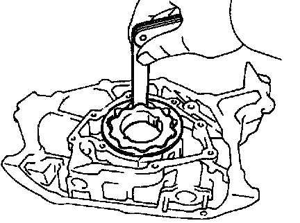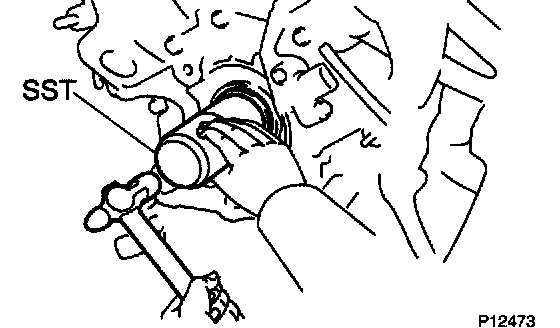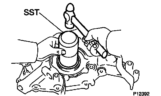 2) Using SST and a hammer, tap in a new oil seal until its surface is flush with the oil pump body edge.