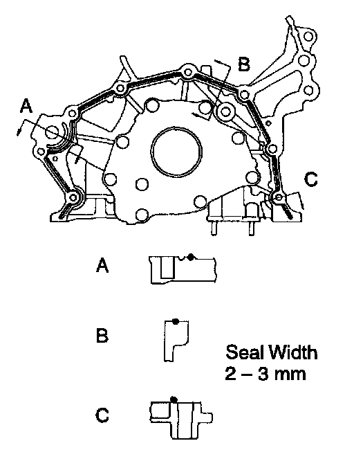 b. Apply seal packing to the oil pump as shown in the illustration.