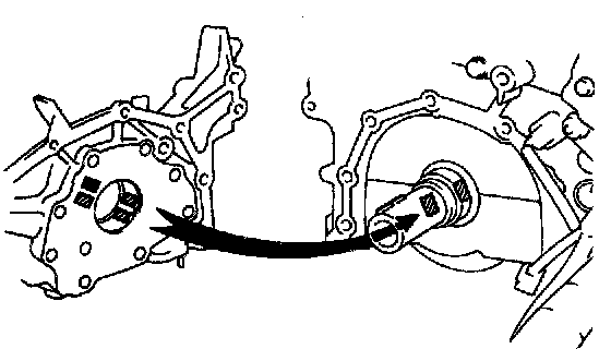 d. Engage the spline teeth of the oil pump drive gear with the large teeth of the crankshaft, and slide the oil pump on the crankshaft.