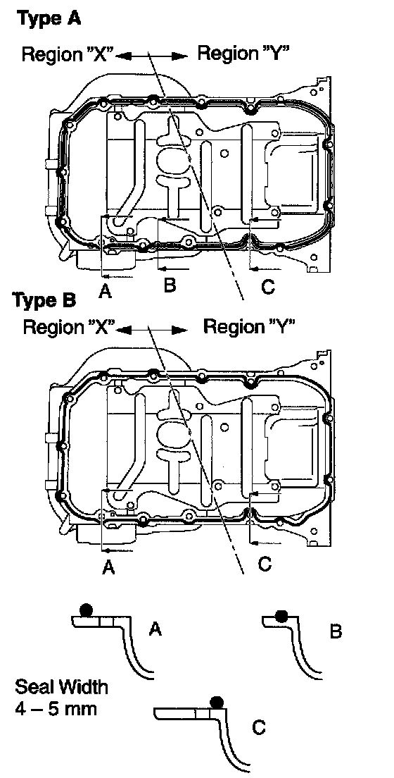 b. Apply seal packing to the oil pan as shown in the illustration.