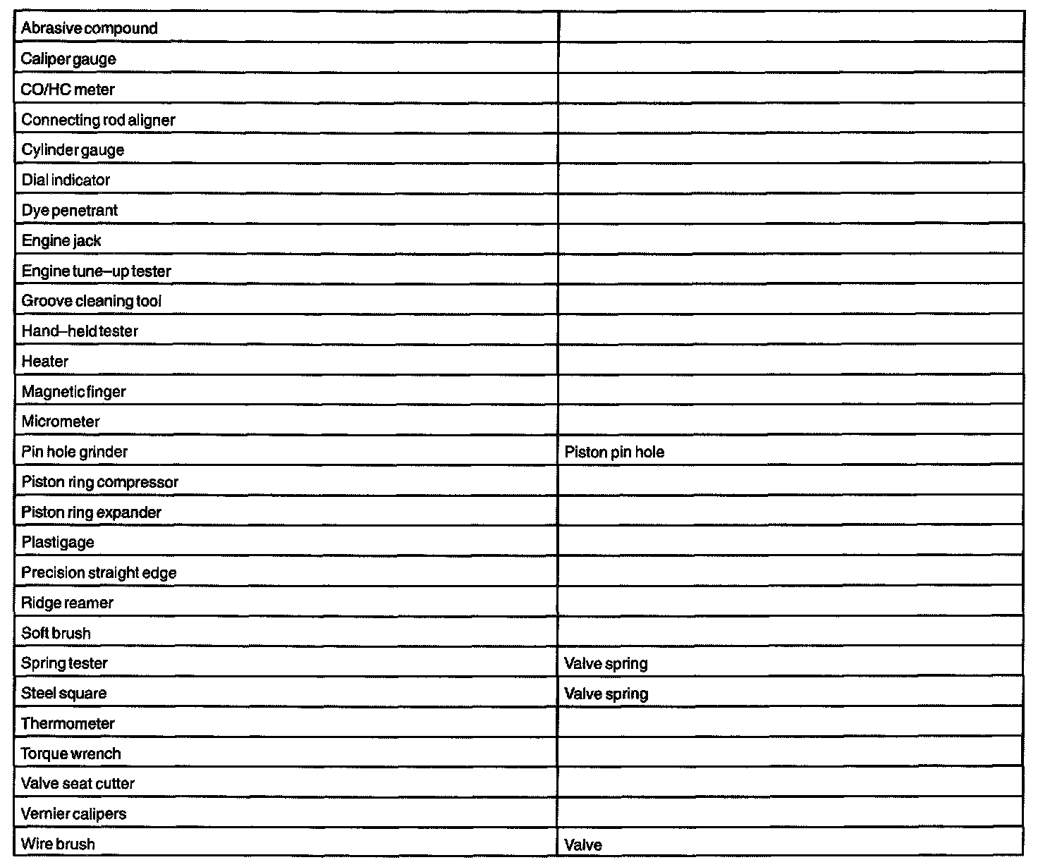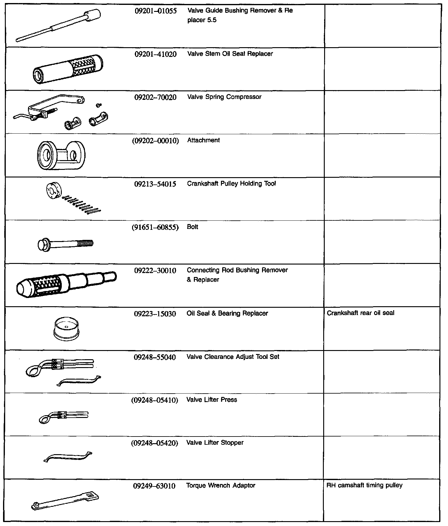 Engine Mechanical (1MZ-FE) - Recommended Tools: