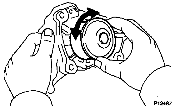 b. Turn the pulley, and check that the water pump bearing moves smoothly and quietly.