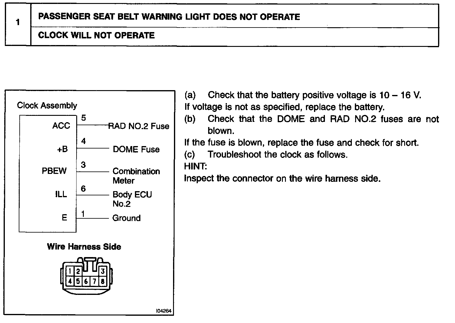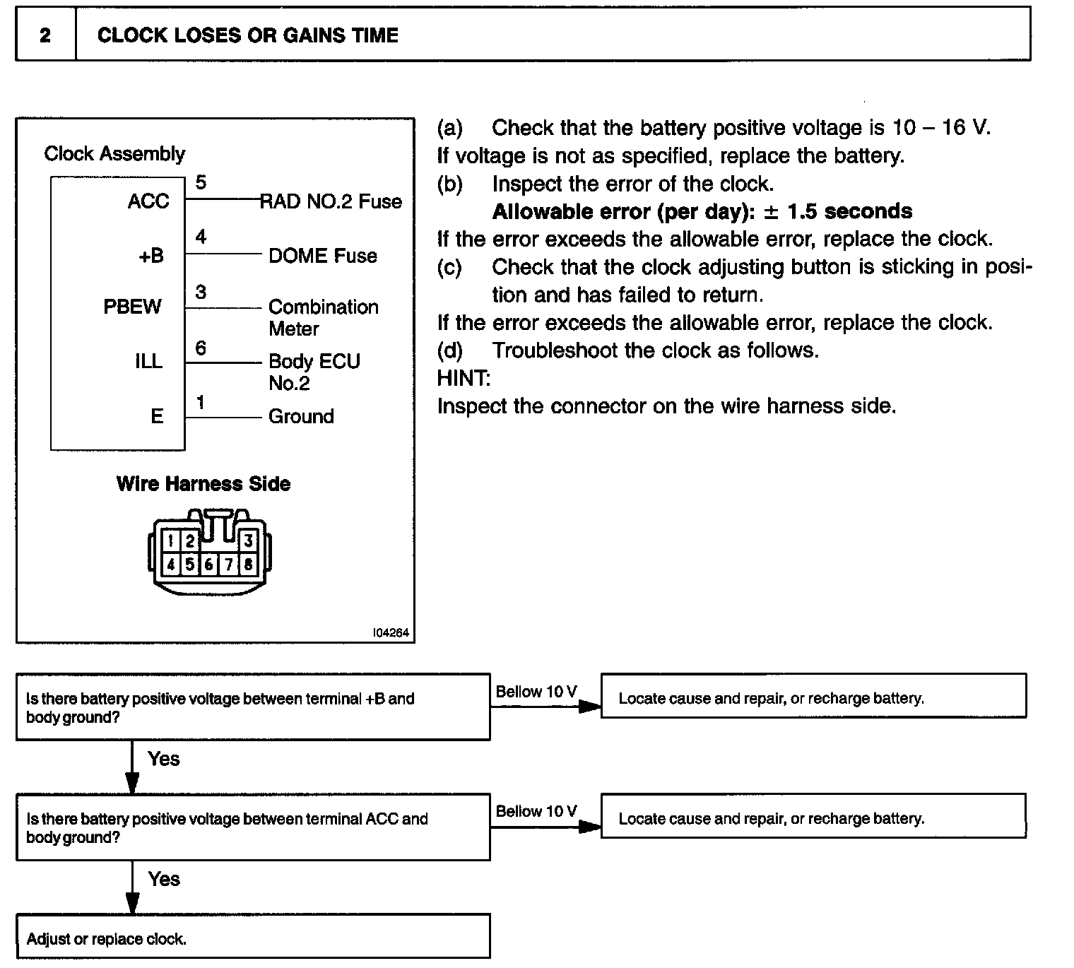 Troubleshoot the clock according to the table.