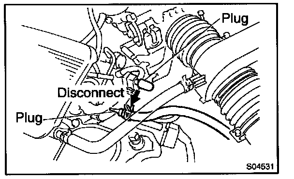 e. Disconnect the air assist hose from the air pipe, and block off the IAC valve exit and the entry to the pipe.