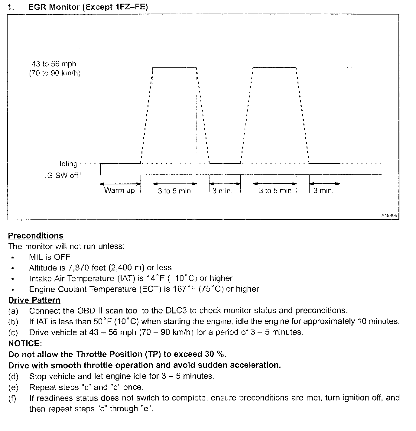Monitor 1: EGR Monitor (Except 1FZ-FE)