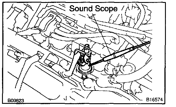 1. With the engine running or cranking, use a sound scope to check that there is normal operating noise in proportion to engine speed.
