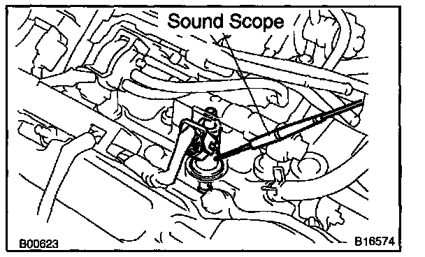 b. Use a sound scope to check for injector operating noise.