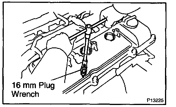 e. Using a 16 mm plug wrench, remove the 6 spark plugs from the RH and LH cylinder heads.