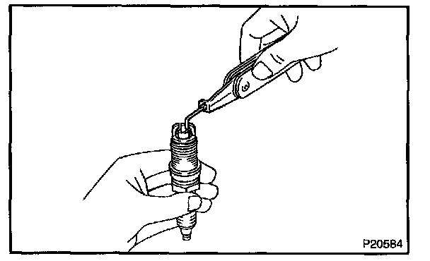 NOTE: If adjusting the gap of a new spark plug, bend only the base of the ground electrode. Do not touch the tip. Never attempt to adjust the gap on the used plug.
