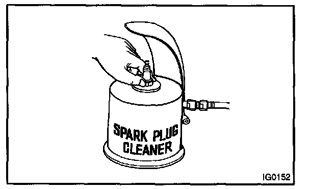 HINT: If there are traces of oil, remove it with gasoline before using the spark plug cleaner.