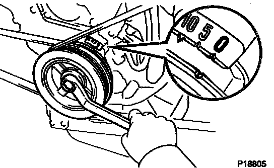 a. Turn the crankshaft pulley, and align its groove with the timing mark "0" of the No.1 timing belt cover.