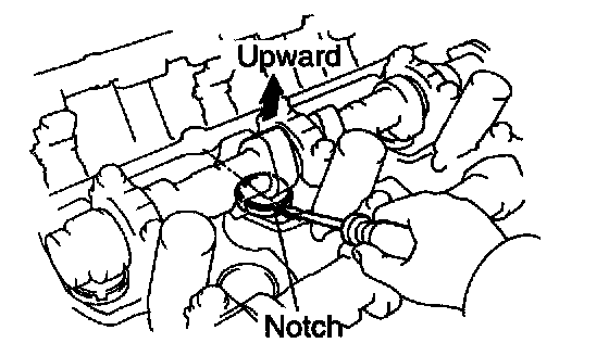 2) Turn the valve lifter with a screwdriver so that the notches are perpendicular to the camshaft.