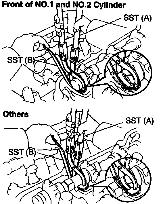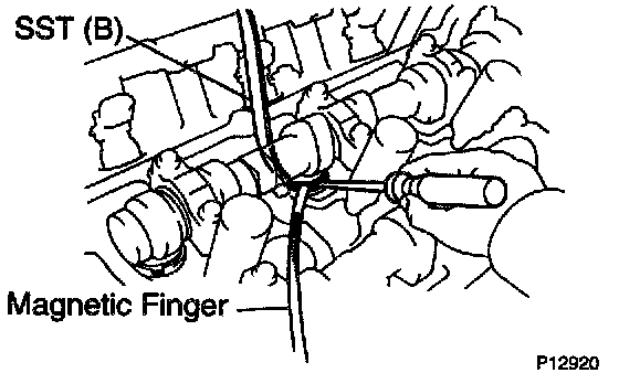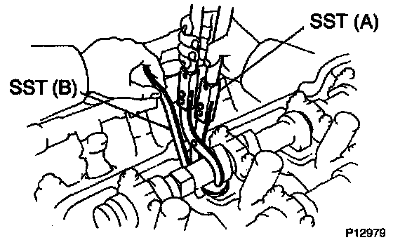 2) Press down the valve lifter with SST (A), and re move SST (B).
