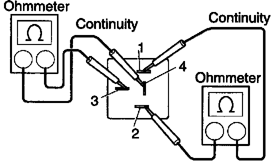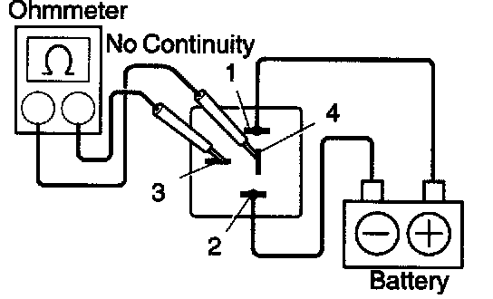 2) Using an ohmmeter, check that there is no continuity between terminals 3 and 4.
