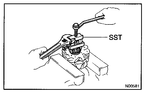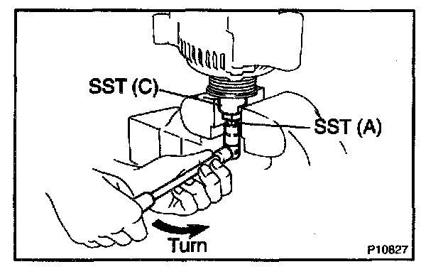c. Check that SST (A) is secured to the pulley shaft.