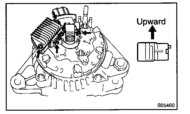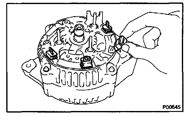 b. Remove the 5 screws, brush holder and voltage regulator.