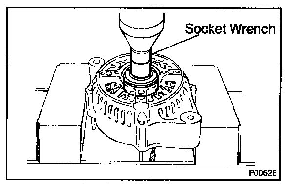 b. Using a 29 mm socket wrench and press, slowly press in the rectifier end frame.