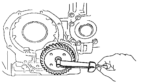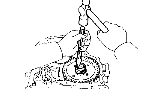 b. Install the bar into the case hole to drive out the drive pinion.