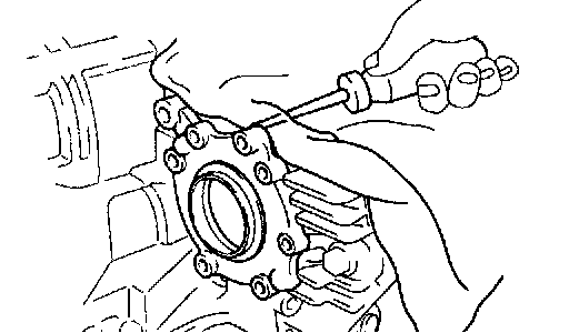b. Using a large screwdriver, remove the LH bearing retainer.