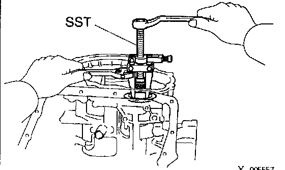 c. Using SST, remove the gear and bearing.