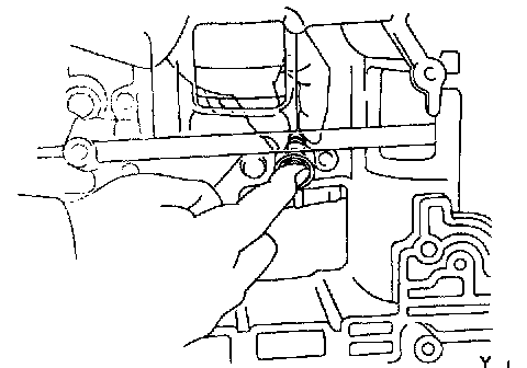 d. Slide out the shaft from the transaxle case and remove the manual valve lever and parking lock rod.