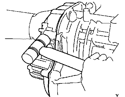 b. Tap on the circumference of the overdrive case with a plastic hammer to remove the overdrive case and gasket.