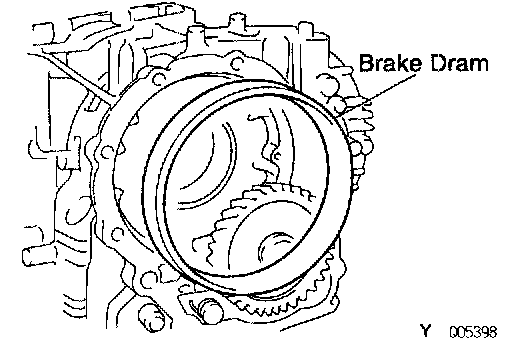 d. Remove the overdrive brake drum from the transaxle case.