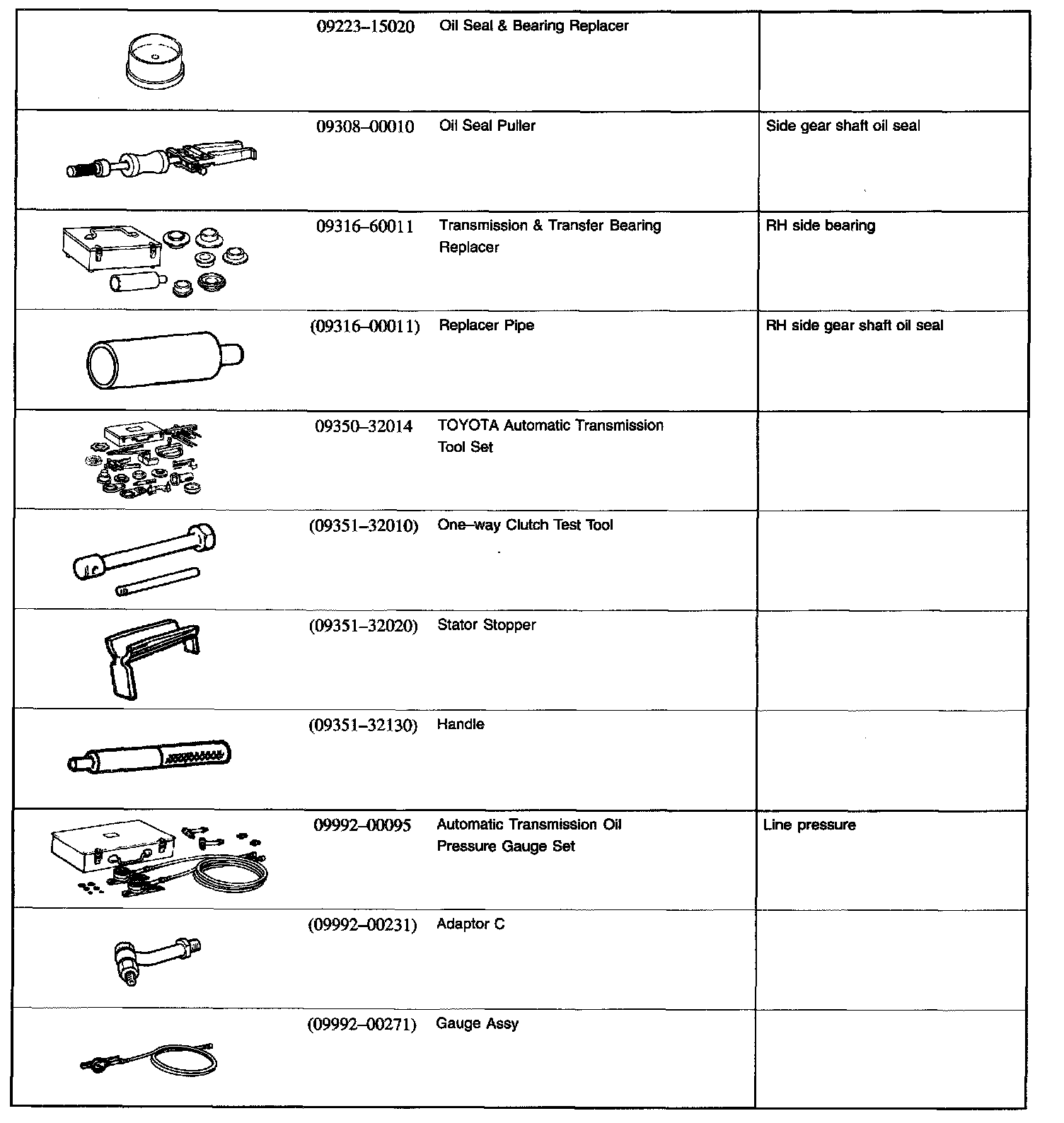 Automatic Transaxle (A541E) - SST(Special Service Tools):