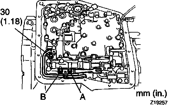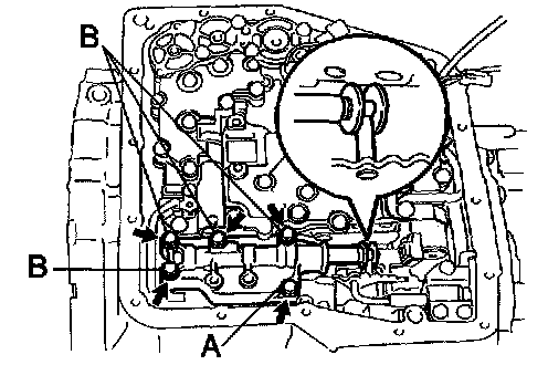 b. Check that the manual valve lever is touching the center of the detent spring tip roller.