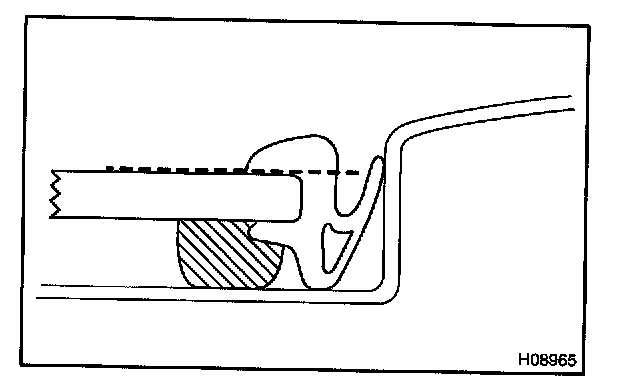 Install new back window outside moulding to the back window glass as shown in the illustration.