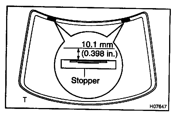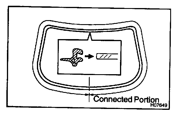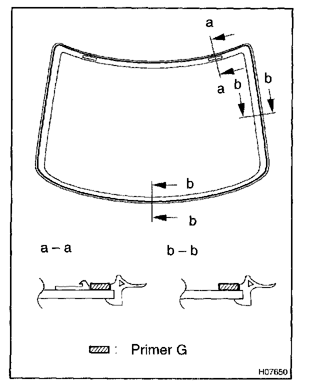 a. Using a brush or sponge, coat the edge of the glass and the contact surface with Primer G as shown in the illustration.