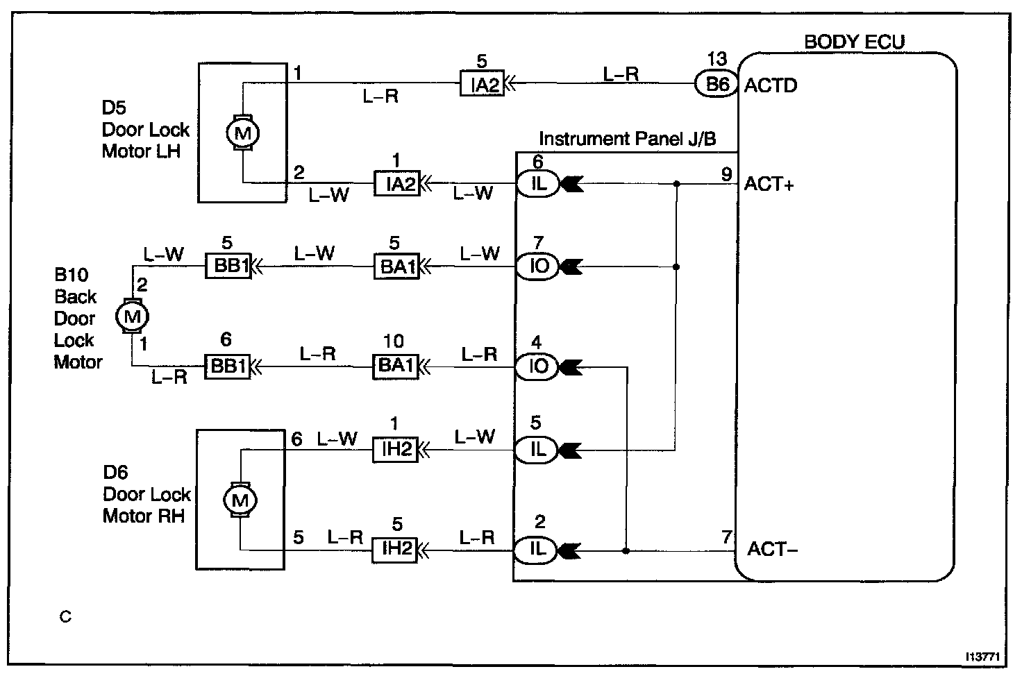 When the door switch is set to LOCK, the body ECU outputs a signal to lock all of the doors.