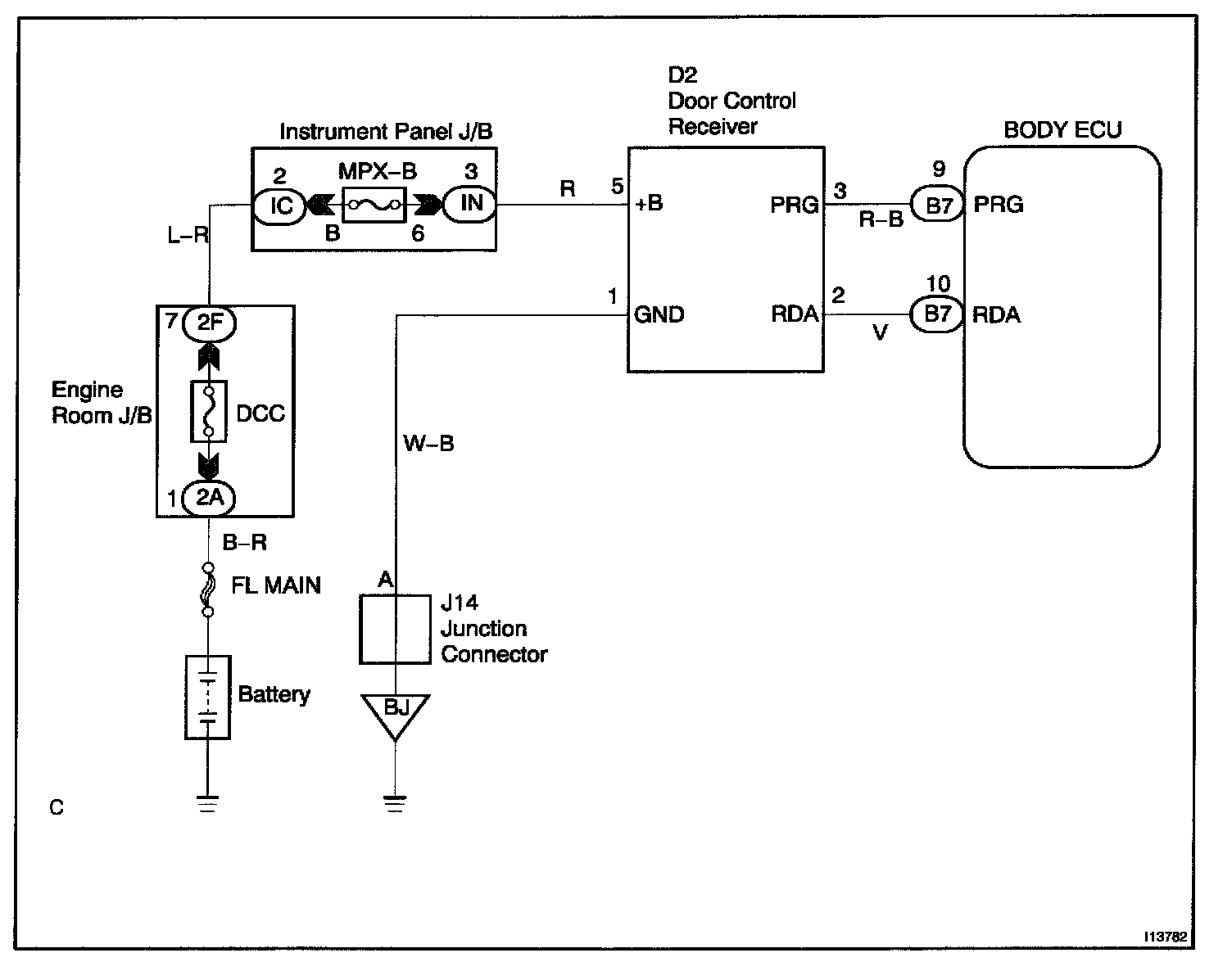 CIRCUIT DESCRIPTIONThe signal from the transmitter will be input to the body ECU through RDA line. RDA line is diagnosed by the Body ECU, so check DTC also in case of the failure of the wireless function.