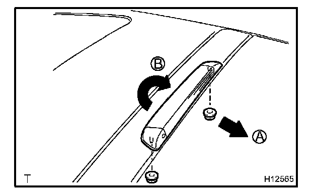 b. Disconnect the connector and washer hose, then remove the center stop light in order A, B as shown in the illustration.