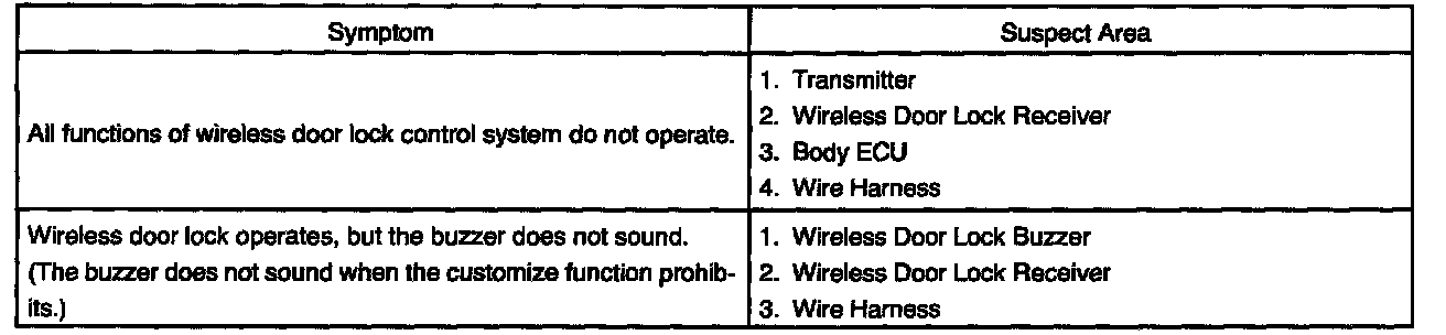 - If the trouble still reappears even though there are no abnormalities in any of the other circuits, check and replace the Wireless Door Lock Receiver as the last step.