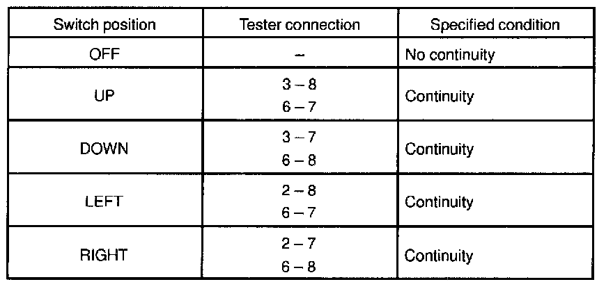 INSPECTION1. INSPECT LEFT SIDE MIRROR SWITCH CONTINUITY