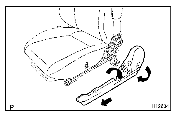 Remove the front seat cushion shield as shown in the illustration.