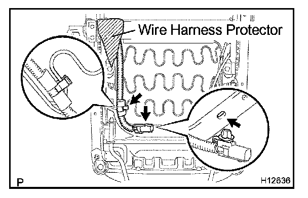 Replace the wire harness protector as shown in the illustration.
