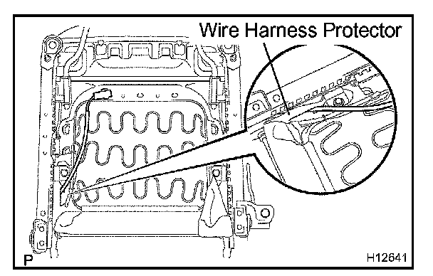 a. Pass the wire harness of front seat inner belt through the wire harness protector of seat cushion assembly and install the front seat inner belt.
