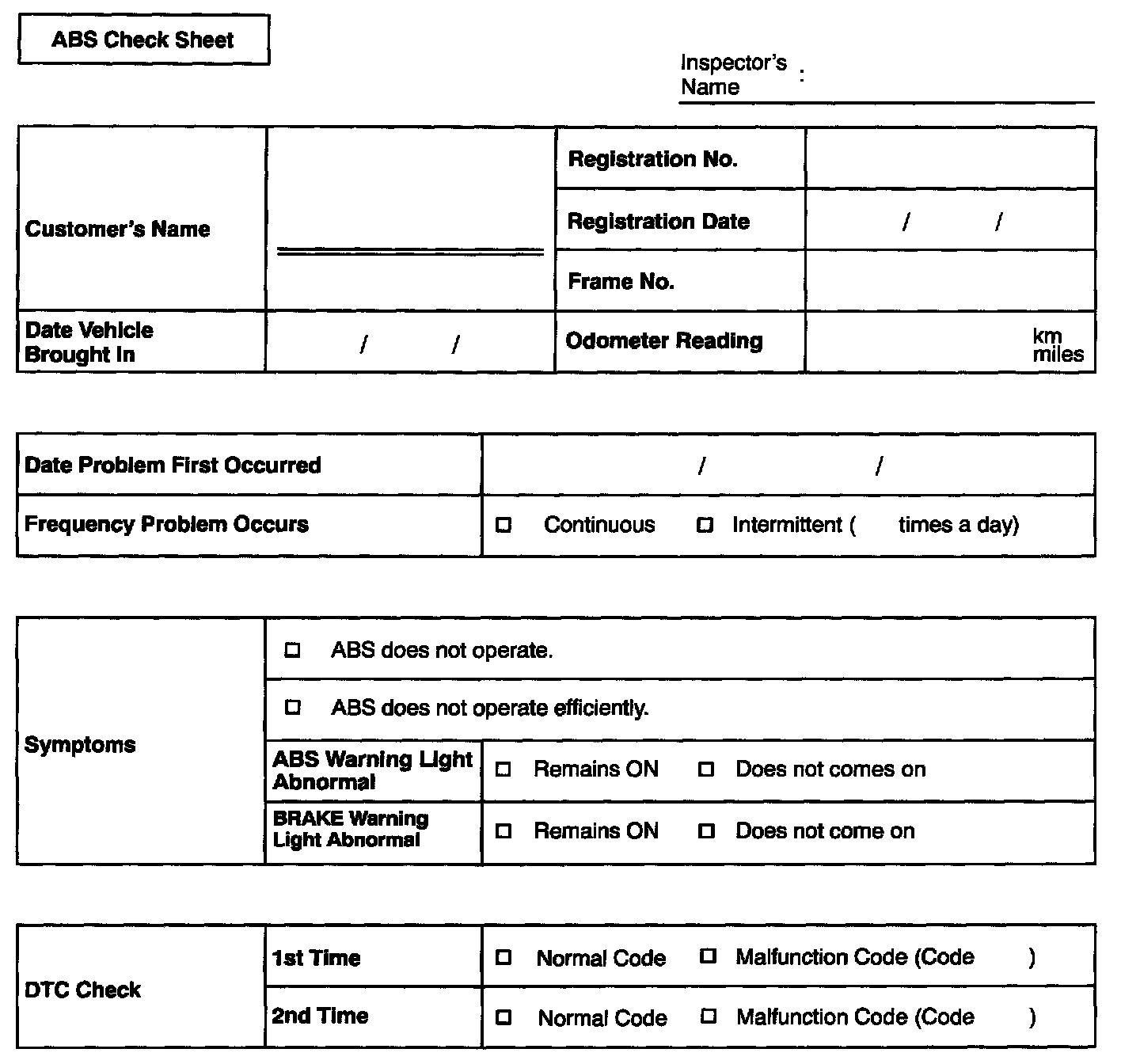 ABS Check Sheet: