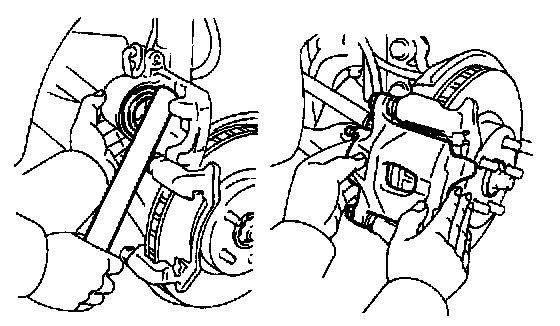 HINT: If the piston is difficult to push in, loosen the bleeder plug and push in the piston while letting some brake fluid escape.
