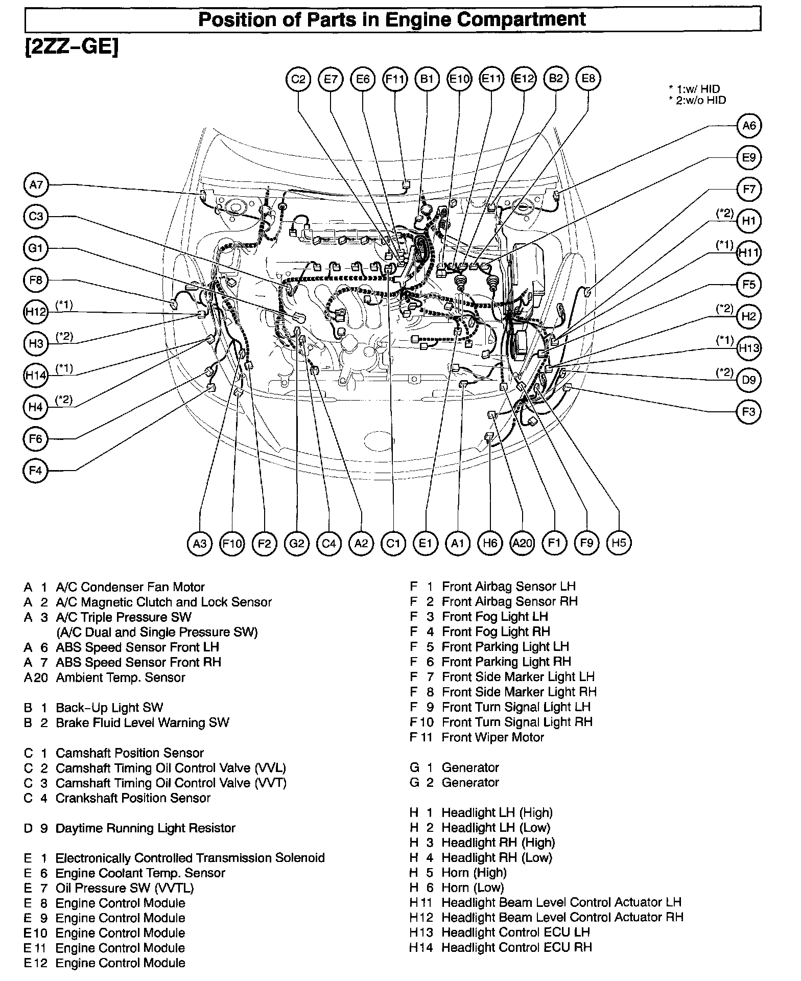 Position of Parts In Engine Compartment