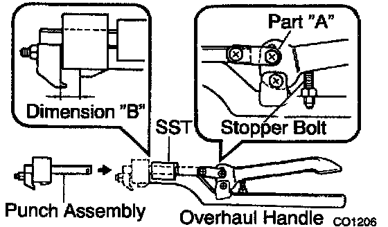 a. Install the punch assembly to the overhaul handle, inserting it in the hole in part "A" as shown in the illustration.