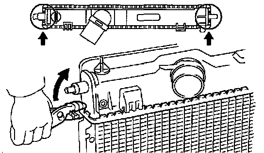 Lightly tap the bracket of the radiator (or radiator inlet or outlet) with a soft-faced hammer, and remove the tank and the O-ring.
