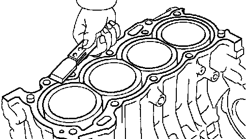 Using a gasket scraper, remove all the gasket material from the top surface of the cylinder block.