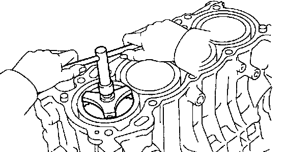 e. Check the piston pin fit at normal room temperature. Coat the piston pin with engine oil, and push it into the connecting rod with your thumb.