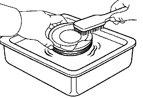 Using a soft brush and solvent, thoroughly clean the cylinder block.