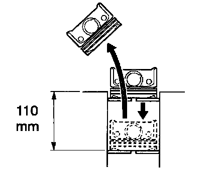 b. Using a piston, push the piston ring a little beyond the bottom of the ring travel 110 mm (4.33 inch) from the top of the cylinder block.